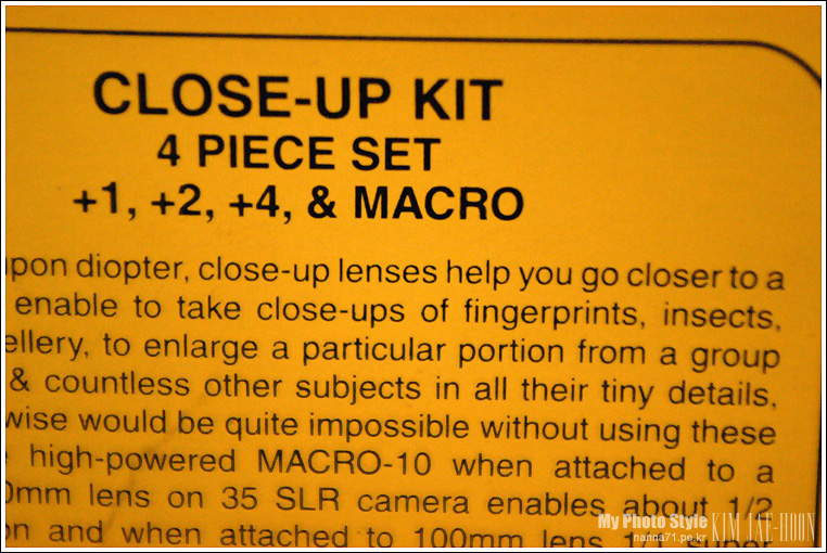 사실, 60mm macro 렌즈를 사고 싶은 마음이야 굴뚝같지만... 자금이 여의치 않은 관계로... 그냥 Close Up 필터를 사 보았습니다. 쓸만할까?