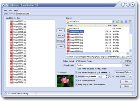 FastStone Photo Resizer is an image converter / resizer intended to enable users to convert, rename, resize, crop, rotate, change color depth, add text and watermarks to images in a quick and easy batch mode. Drag and Drop mouse operation is well supported.
