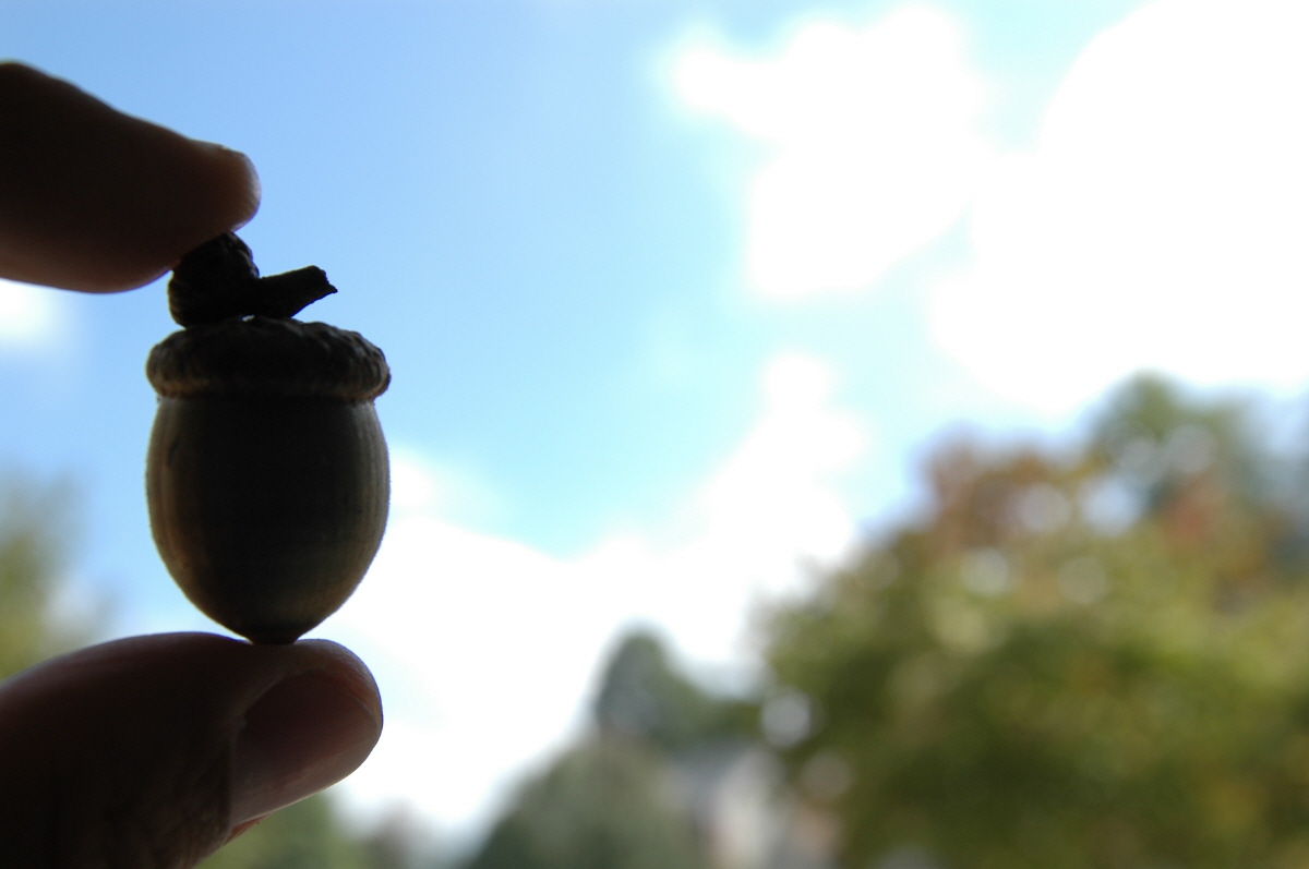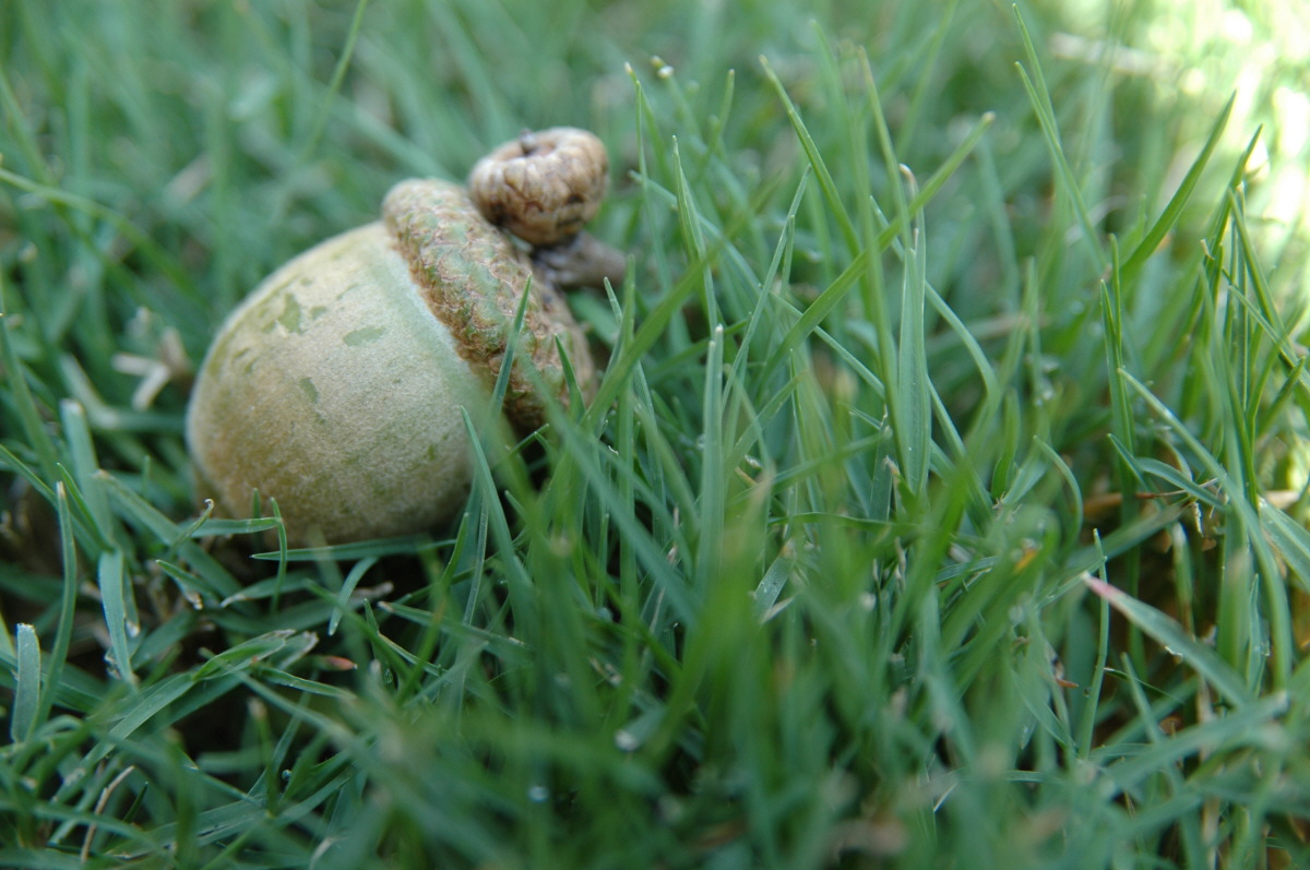 마당에 도토리가 떨어진다.