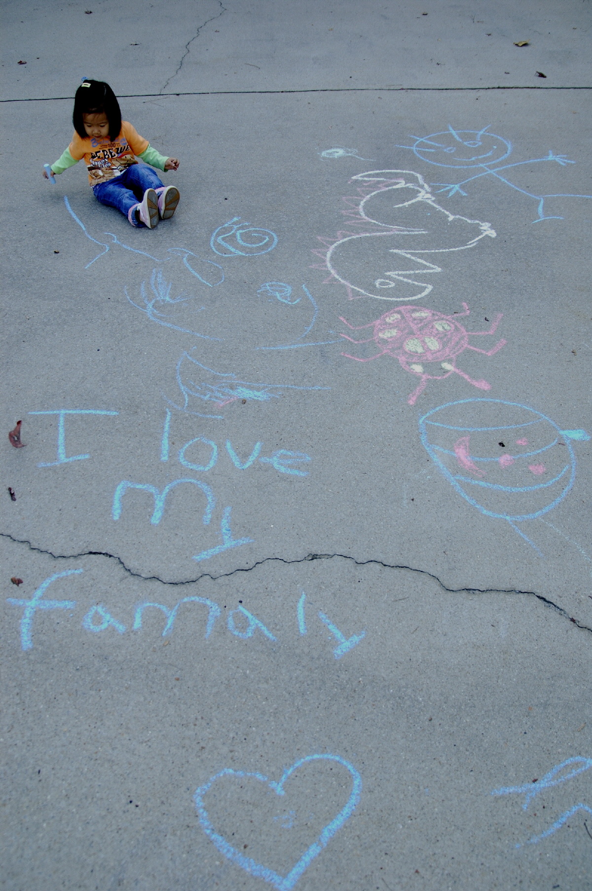 드라이브웨이가 아이들 칠판이 되버렸다.