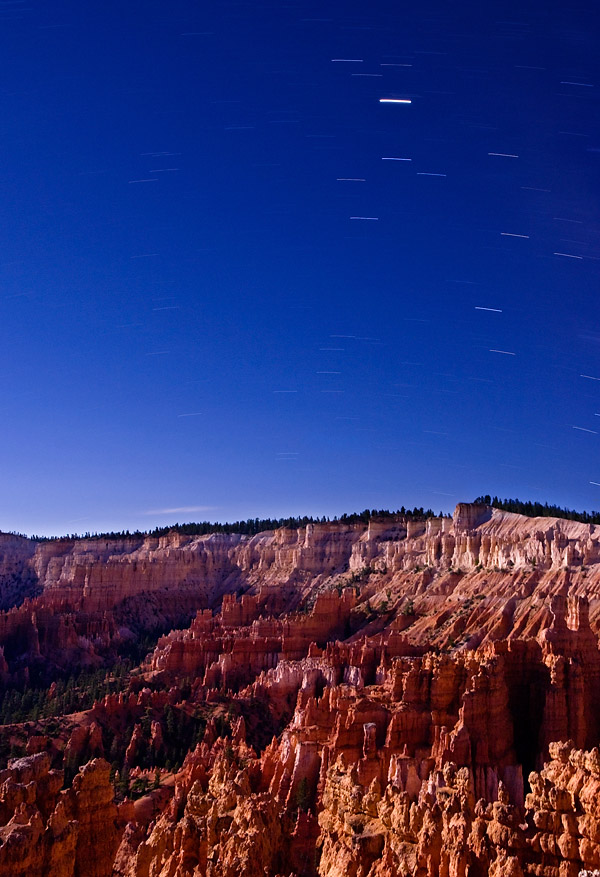 브라이스 캐년에서 달이 떠오를때 약 8분간 노출을 주어 찍은 사진입니다. 달이 떠 오르는게 사진으로 찍으면 꼭 해가 뜰때와 느낌이 비슷하더군요...다만 차이는 별이 보인다는것! 하늘이 밝아보이지만 맨눈으로는 쏟아질듯한 양의 별만 보였고 촬영시간은 밤 10시가 넘었었습니다.