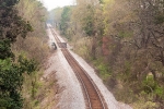 Railroad track and graffiti in the forest